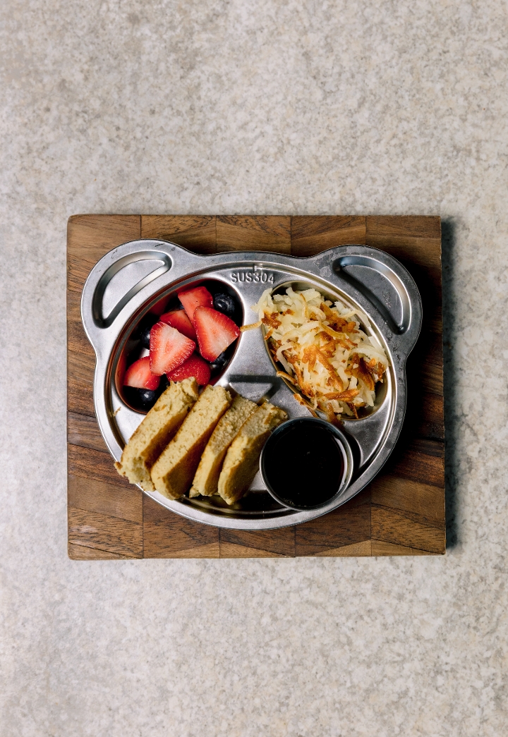 Three Gluten-Free Pancakes served with whipped butter + real maple syrup